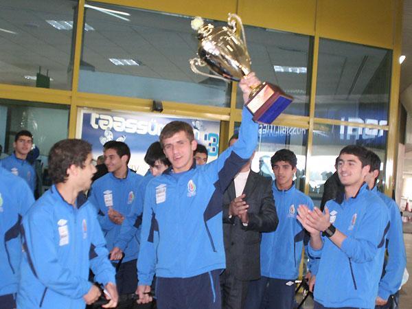 Qazaxıstanın Astana şəhərində keçirilən "Prezident kuboku"nun qalibi olan 17 yaşadək futbolçulardan ibarət Azərbaycan yığması dünən Bakıya qayıdıb. Qol.Az-ın məlumatına görə, Heydər Əliyev Beynəlxalq Aeroportunda yığmamızı bir qrup azarkeş qarşılayıb.