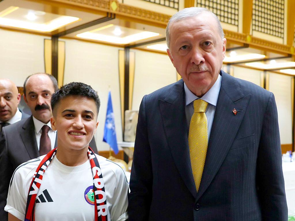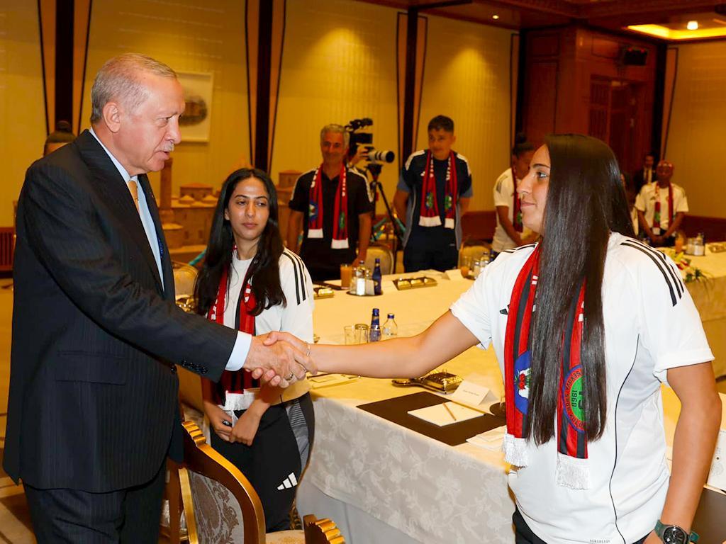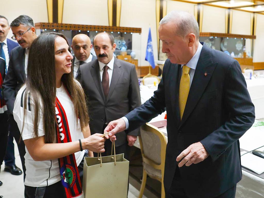 Türkiyə Prezidenti Rəcəb Tayyib Ərdoğan qadınlardan ibarət “Yüksekovaspor” komandasını qəbul edib.