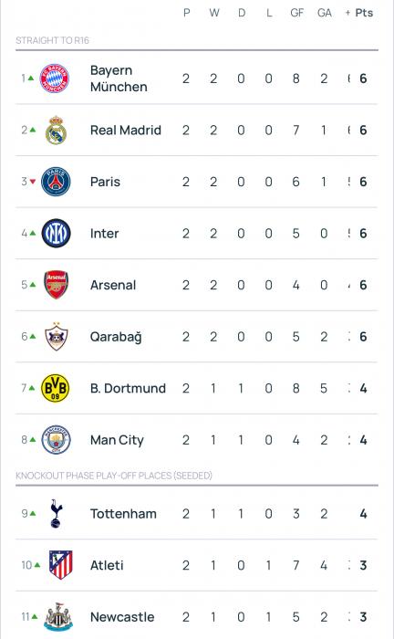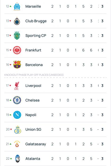 Xatırladaq ki, ÇL-in Liqa mərhələsində ilk 8 yeri tutan komanda birbaşa 1/8 finala, 9-24-cü yeri tutanlar isə pley-off mərhələsinə vəsiqə qazanır. 25-36-cı yeri tutanlar avrokuboklarda çıxışlarını başa vururlar.