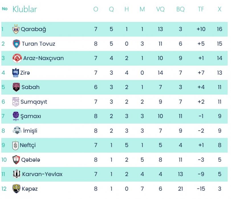 Qeyd edək ki, tura sabah keçiriləcək iki matçla yekun vurulacaq.