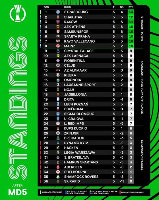 Qeyd edək ki, Çempionlar Liqası və Avropa Liqasından fərqli olaraq, Konfrans Liqasının Liqa mərhələsi 8 deyil, 6 turdan ibarətdir.