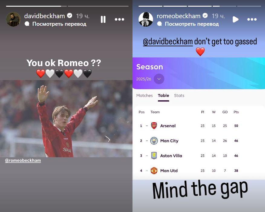 QOL.az xəbər verir ki, o, İngiltərə Premyer Liqasının 23-cü turunda "Arsenal" üzərində qazanılan qələbə fonunda sosial mediada paylaşım edib. "Qırmızı şeytanlar"ın 3:2 hesablı qələbəsi ilə yekunlaşan matçdan sonra Bekhem "topçular"ın azarkeşi olan oğluna ismarıc göndərib. O, sabiq klubundakı dövrünü əks etdirən fotosunu paylaşaraq oğlunu işarələyib və "Yaxşısan, Romeo?" sualını ünvanlayıb.