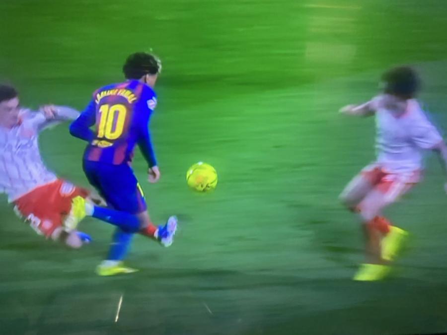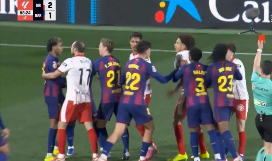 QOL.az xəbər verir ki, matçın 90+9-cu dəqiqəsində "Jirona"nın yarımmüdafiəçisi Joel Roka Kataloniya təmsilçisinin futbolçusu Lamin Yamala qarşı sərt qayda pozuntusu edib.