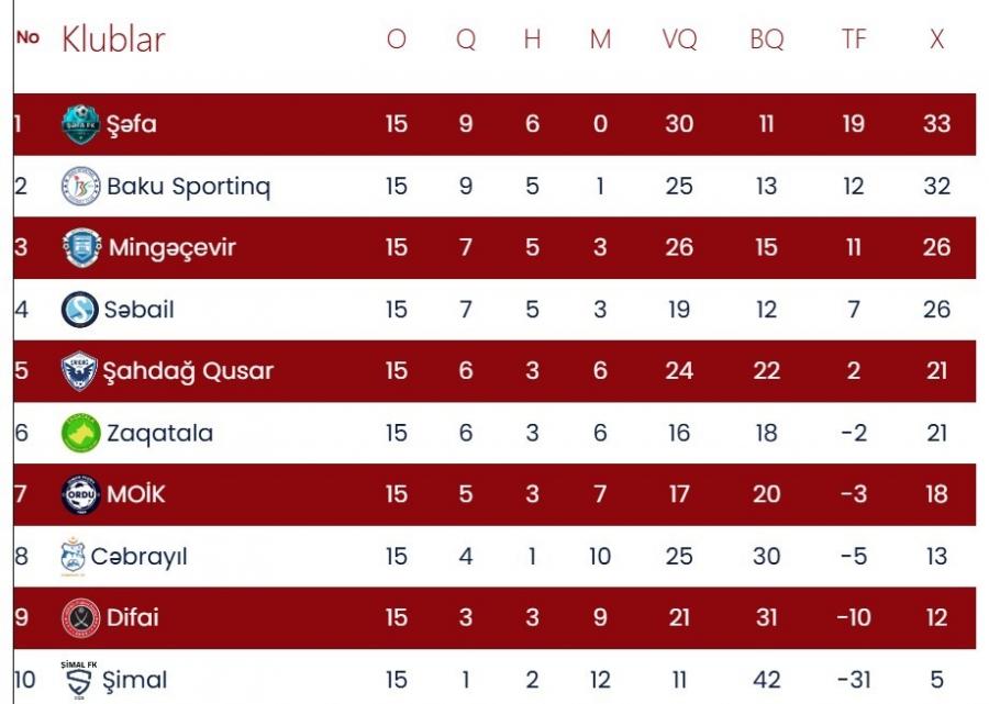 Bu gün Azərbaycan 1-ci liqasında 15-ci tura yekun vurulub.