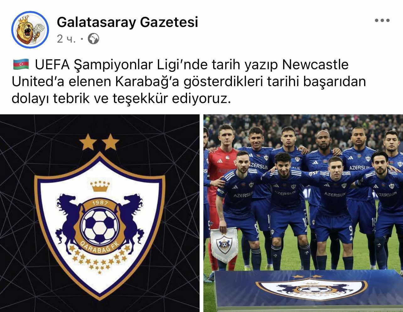 Türkiyənin bir sıa media qurumu "Qarabağ"ın UEFA Çempionlar Liqasında çıxışına yekun vurması ilə bağlı paylaşımlar edib, yazılar dərc ediblər.
