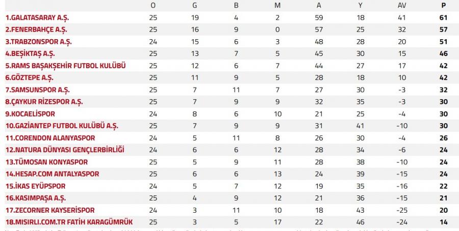 Türkiyə Superliqası, 25-ci tur