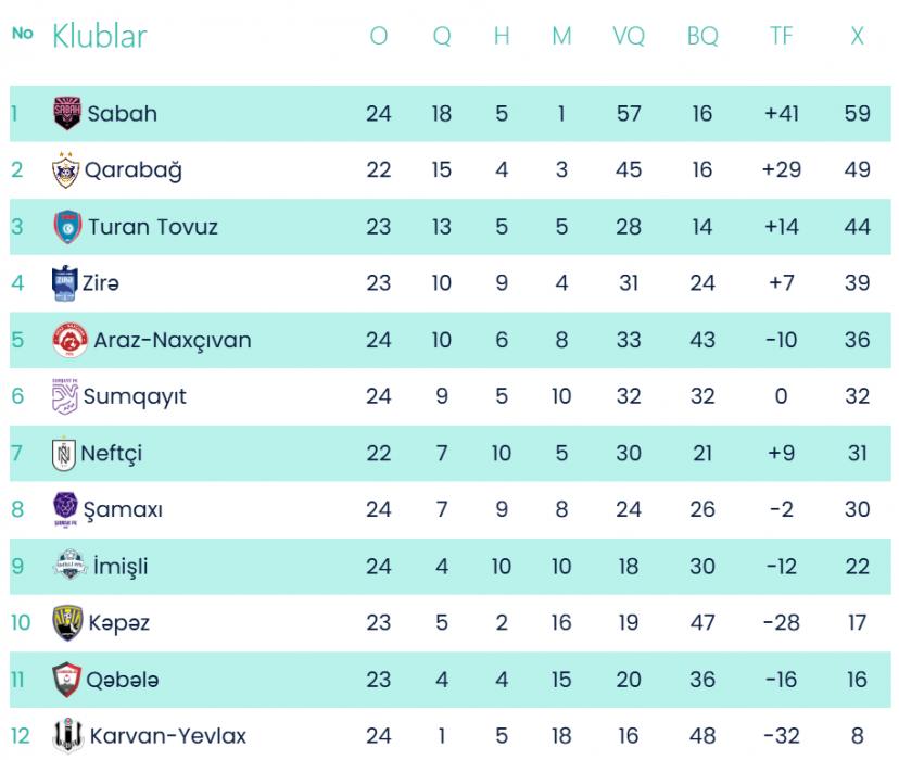 Əvvəlcə “İmişli” Qubada “Sabah”ı qəbul edib. Matç paytaxt təmsilçisinin böyükhesablı qələbəsi ilə yekunlaşıb. Hazırda paytaxt klubu 59 xalla liderdir, bölgə təmsilçisi isə 22 xalla doqquzuncu pillədə qərarlaşıb. Bu komandaların ilk iki dövrədəki oyunlarında tərəflər hərəyə 1 qələbə qazanıblar. “İmişli” bir, “Sabah” isə üç cavabsız qolla sevinib.