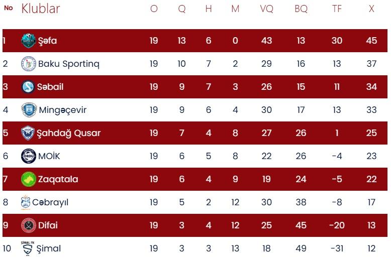 Azərbaycan 1-ci liqasında 19-cu tura yekun vurulub.