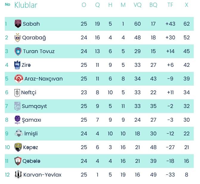 Bu məğlbuiyyət "Qarabağ" üçün çempionluq mübarizəsində ağır zərbə olub. Ağdam təmsilçisinin hazırda lider "Sabah"la arasında 10 xal fərq yaranıb. Ancaq "Qarabağ"ın ehtiyatda bir oyunu da qalır.