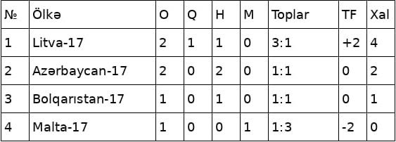 Qeyd edək ki, Azərbaycan millisi daha əvvəl Malta ilə 1:1 hesablı heç-heçə edib. Yığma hazırda 2 xalla 4 komanda arasında 2-ci yerdədir. Litva 4 xalla liderdir.
