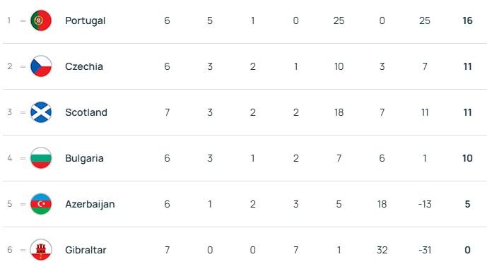 Qeyd edək ki, 6 turdan sonra 1 qələbə, 2 heç-heçə və 3 məğlubiyyəti olan Azərbaycan millisi 5 xalla qrupda 5-ci pillədə qərarlaşıb. 10 xalı olan Bolqarıstan isə 4-cü yerdədir.