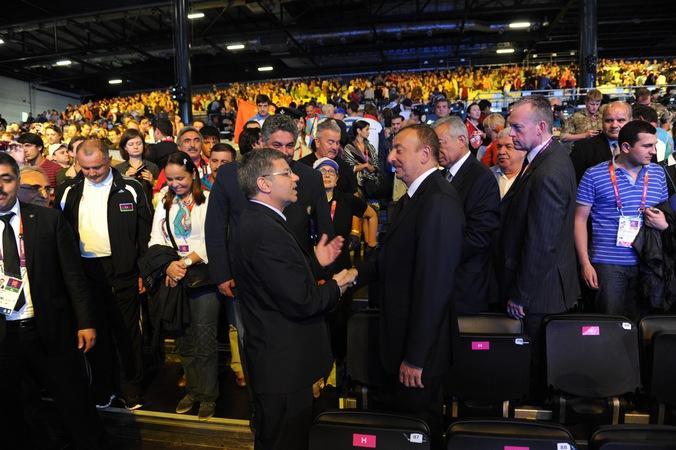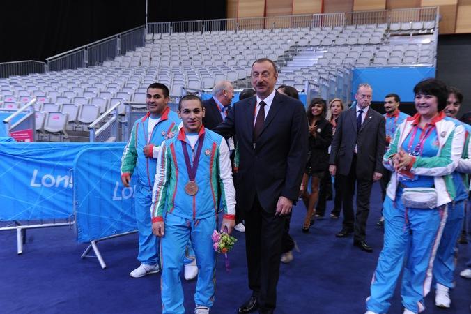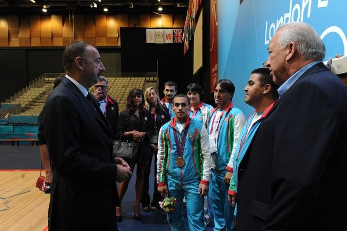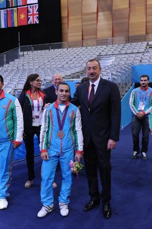 Yarışdanda sonra dövlət başçısı üçüncü yeri tutan ağır atletimizi və yığmamızın məşqçilər korpusunu qələbə münasibətilə təbrik edib.