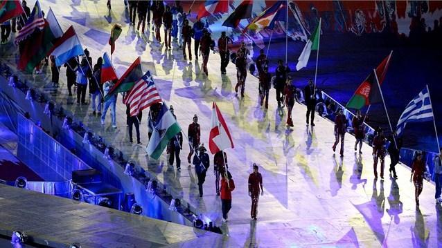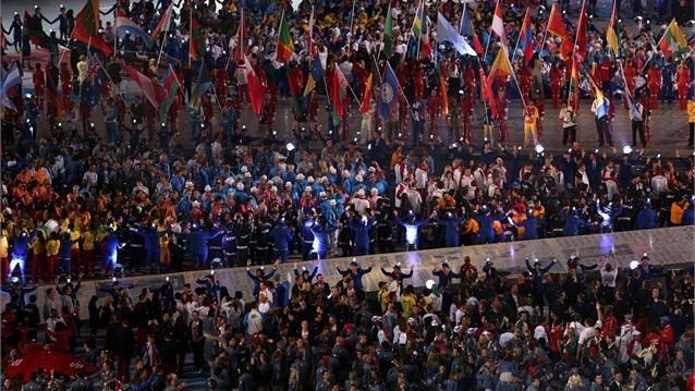 Tədbirin gedişində olimpiadada iştirak etmiş bütün ölkələrin nümayəndələri öz bayraqları ilə birgə mərasimin keçirildiyi stadiona daxil olublar.