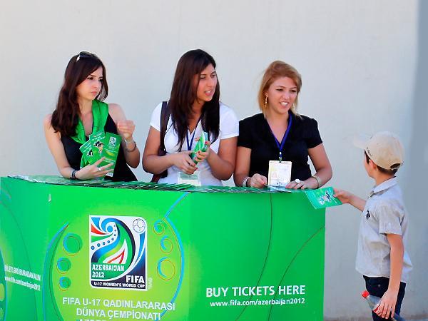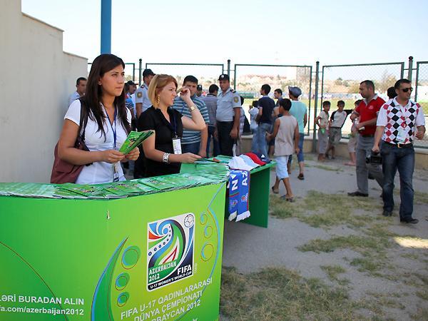 Qol.Az-ın məlumatına görə, FIFA U-17 qadınlararası dünya çempionatı Azərbaycan 2012-nin Yerli Təşkilat Komitəsinin təşkil etdiyi aksiyada oyunu izləmək üçün stadiona gələn azarkeşlərə çempionatın təbliğat materialları - bilet satış nöqtələri, bilet qiymətləri haqqında məlumat, çempionat oyunlarının cədvəli və s. broşurlar paylanıb.