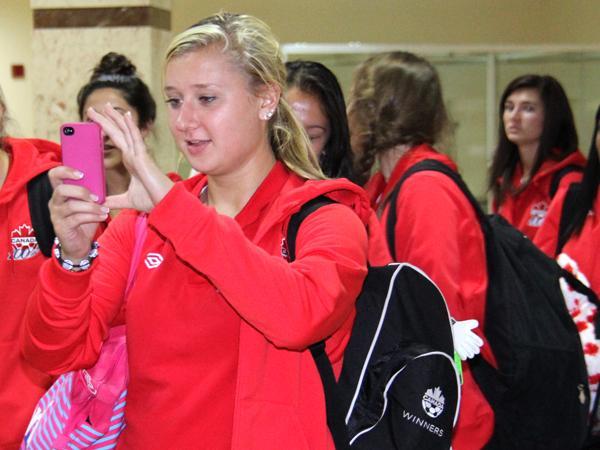 Top Top Qızın təqdim etdiyi gül dəstələrini aldıqdan və kollektiv şəkil çəkdirdikdən sonra komandanın üzvləri qalacaqları otelə yola düşüb. Kanada yığması qonaqpərvərliklə qarşılanmalarından məmnun olduqlarını bildirib.