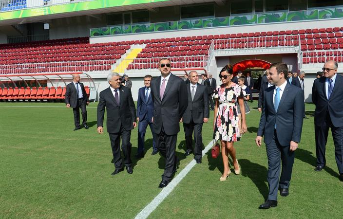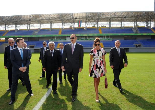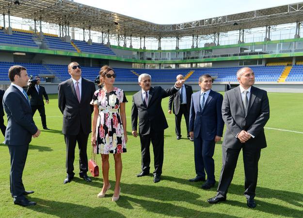 Azərbaycan Respublikasının Prezidenti İlham Əliyev və xanımı Mehriban Əliyeva stadionun açılış mərasimində iştirak ediblər.