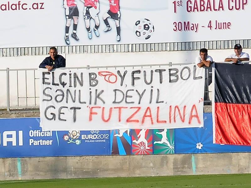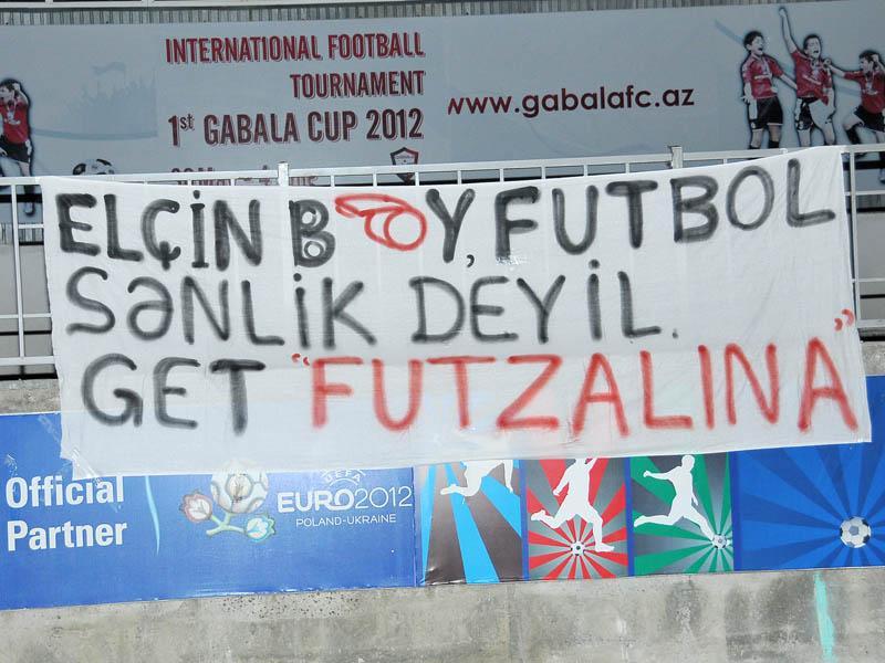 Son olaraq, onlar dünən “Qəbələ” – “Rəvan” matçında E.Məmmədovun hakimlikdən getməsini tələb ediblər. Görüşü başqa bir hakim – Rəhim Həsənov idarə etsə də, onlar E.Məmmədov əleyhinə pankartlar hazırlayıblar. Pankartlar da “Elçin bəy, futbol sənlik deyil, get, futzalına” sözləri yer alıb.
