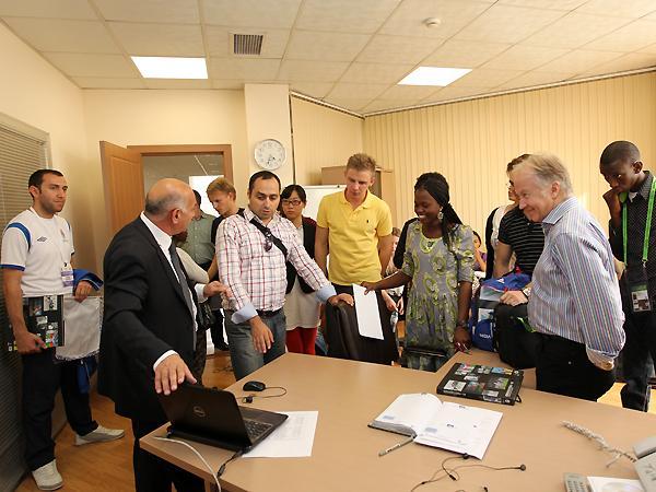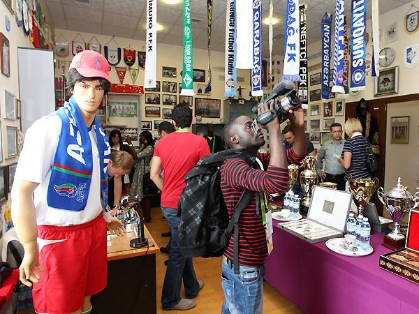 Xəbər verdiyimiz kimi, Bakıda Beynəlxalq İdman Jurnalistləri Assosiasiyası tərəfindən Gənc Reportyorlar Proqramı təşkil edilib. Proqram çərçivəsində ölkəmizdə səfərdə olan mətbuat nümayəndələri bu gün AFFA-nın inzibati binasında olublar. Əvvəlcə AFFA-nın Futbol muzeyi ilə tanış olan jurnalistlər burada xatirə kitabına ürək sözlərini yazıb, daha sonra assosiasiyanın İnformasiya və İctimaiyyətlə Əlaqələr Departamentinin fəaliyyəti, affa.az, affavideo.az və affatv.az saytlarının, "Futbol dünyası" qəzetinin iş prinsipi ilə maraqlanıblar. AFFA-nın inzibati binasının qarşısında xatirə şəkli çəkdirən mətbuat nümayəndələri çalışdıqları televizya kanalları üçün reportaj hazırlayıblar.