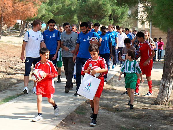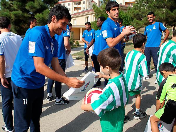 Qol.Az-ın AFFA-nın saytına istinadən yaydığı məlumata görə, bu dəfə millimiz baş məşqçi Berti Foqtsun rəhbərliyi ilə Bakı SOS Uşaq Kəndi-ndə olub. Futbolçular burada tərbiyə alan uşaqlara topla müxtəlif fəndlərin icrasını nümayiş etdirib, əyləncəli futbol oyunları təşkil olunub. Uşaqlara AFFA-nın hədiyyələri verilib və xatirə şəkli çəkdirilib.