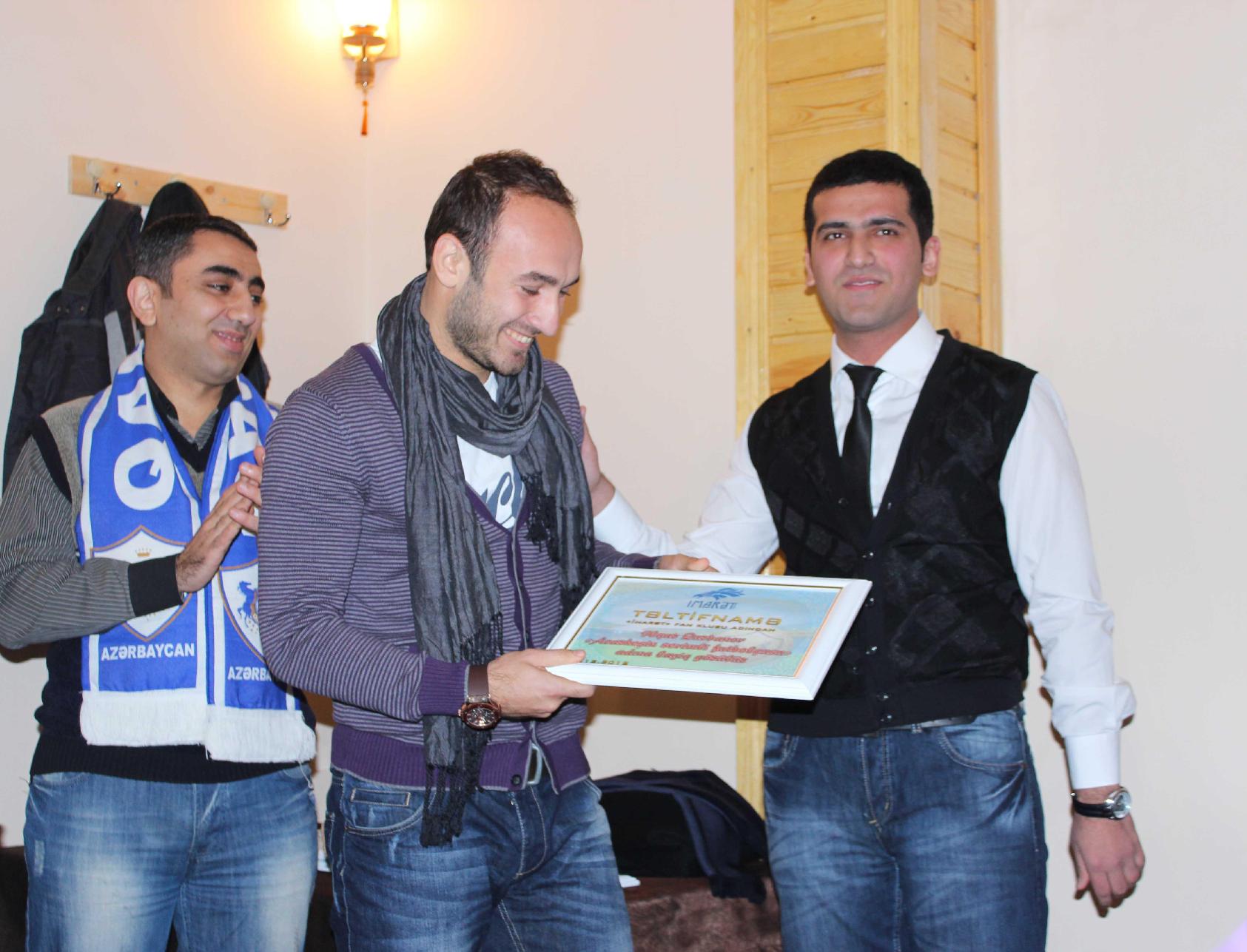 Mükafatlandırma mərasimində “Qarabağ”ın məşqçisi Müşfiq Hüseynov, Qarabağ qazisi Rey Kərimoğlu, Qol.Az saytının baş redaktoru Aydın Bağırov çıxış ediblər.