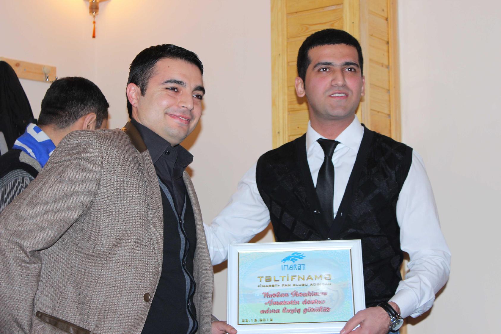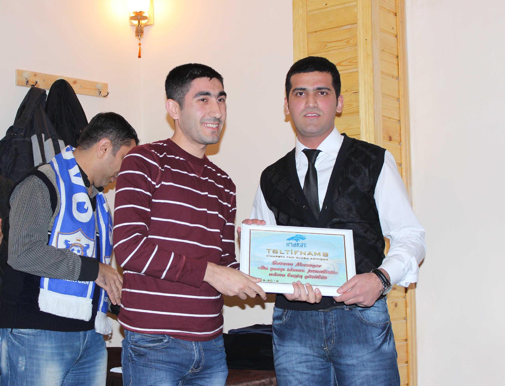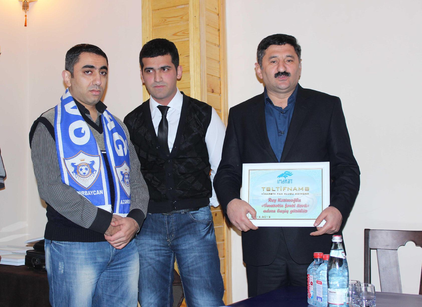 Daha sonra 2012-ci yekunlarına əsasən, qaliblər təltif olunublar. “Qarabağ” klubunun vitse-prezidenti Tahir Gözəl “İmarət”in fəxri üzvü” adına layiq görülüb.