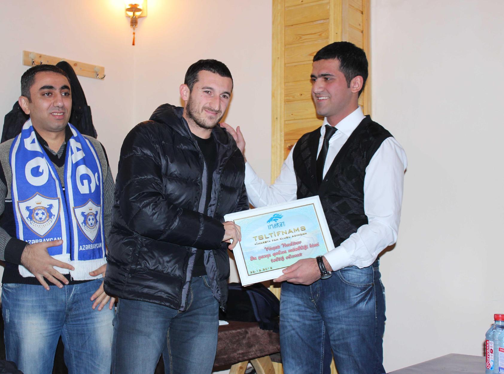 Bu gün “Qarabağ” komandasının azarkeş qrupu olan “İmarət” fan-klubu 2012-ci ilin yekunlarına həsr olunan tədbir keçirib. Qol.Az-ın məlumatına görə, mərasimdə “Qarabağ” klubunun rəhbərliyi, məşqçiləri, bir neçə futbolçusu və media nümayəndələri də iştirak edib.