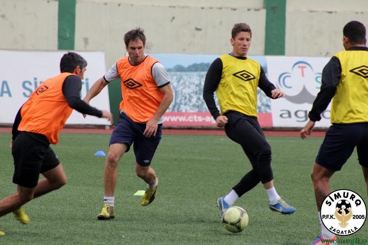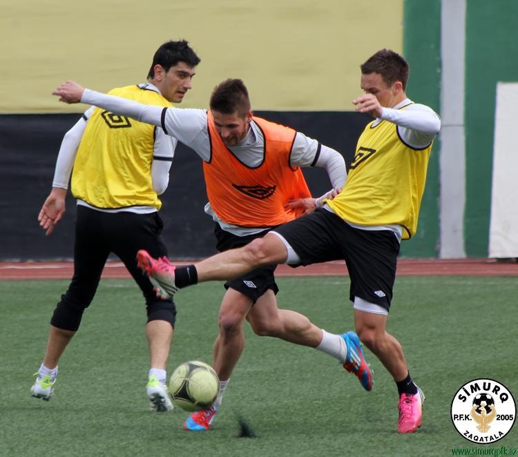 Zaqatala təmsilçisinin bu günkü məşqi əvvəlcə qısa məsafəli qaçış və isinmə hərəkətləri ilə başlayıb. Daha sonra isə meydanın mərkəzində iki qrupa bölünərək qısa ötürmələr üzərində çalışılıb. Hazırlıq ikitərəfli oyun və qapıya zərbələrlə tamamlanıb.