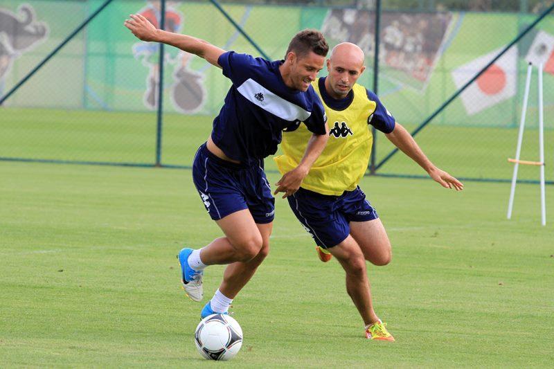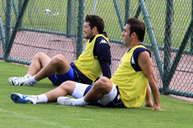 Daha sonra komanda topu qısa məsafələrə ötürmə və paslar üzərində çalışdı . İki qrupa bölünən futbolçular məşq prosesini taktiki gedişlər və qapıya zərbələrlə yekunlaşdırıblar.