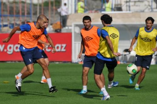 Ötən gün saat 14:00-da Qəbələyə çatan "bankirlər" saat 18:00-da şəhər stadionunda məşq edib.