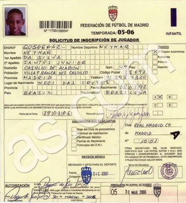 "AS" qəzeti "Real"ın Neymarı komandaya daxil etmək üçün federasiyaya göndərdiyi həmin sənədi ortaya çıxarıb.