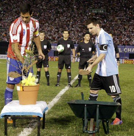 Qol.Az-ın verdiyi məlumata görə, qonaq komandanın ulduz futbolçusu Lionel Messi ilə Paraqvay millisinin kapitanı Santa Kruz qarşılaşma öncəsi "barış ağac"ı əkiblər. Bununla da onlar hər iki ölkə arasında dostluq münasibətlərini gücləndirilməsinə istiqamətində addım atıblar.