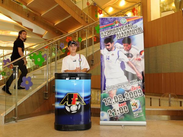 Xəbər verdiyimiz kimi, DÇ-2010-un seçmə mərhələsi çərçivəsində avqustun 12-də saat 21:00-da Tofiq Bəhramov adına Respublika stadionunda keçiriləcək Azərbaycan – Almaniya oyununun biletləri satışa çıxarılıb. Biletlərin bir neçə satış mərkəzi yaradılıb. «Nərgiz» və «Şüvəlan Park» ticarət mərkəzlərində, Bilgəhdəki «Amburan» istirahət mərkəzində, Zuğulbadakı «Gənclik» istirahət mərkəzinin ərazisindəki çimərlikdə və AFFA-nın inzibati binasının ərazisindəki «Fan shop»da biletləri əldə etmək mümkündür.