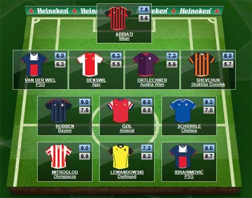Yarımmüdafiəçilər: Aryen Robben ("Bavariya"), Məsut Özil ("Arsenal"), Andre Şyurrle ("Çelsi")