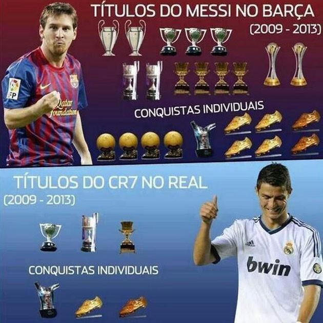 "Marca" qəzeti isə bu fotoya Ronaldonun qazandığı mükafatları da əlavə edib. Fotoda Messinin qazandığı mükafatların Ronaldonun titullarından daha çox olması nəzərə çarpır. Messinin qardaşı şəkillə birlikdə bu ismarıcı yazıb: "Nə zaman bu şəkili görsəm, çox gülürəm".