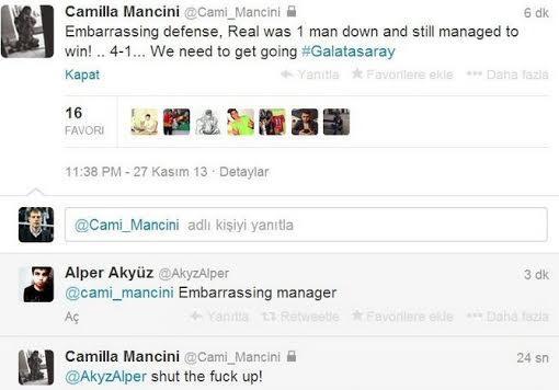 Öz səhifəsində "Utancverici müdafiə. "Real" bir nəfər azlıqda oynasa da, yenə qələbə qazandı. Daha çox çalışmalıyıq" yazan Mançininin qızı məğlubiyyətə səbəbi "Qalatasaray"ın müdafiəsində görüb.