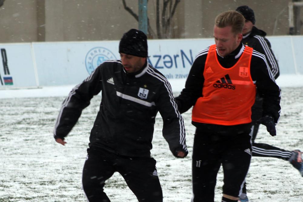 Qol.Az-ın klubun saytına istinadən verdiyi məlumata görə, komanda havanın qarlı olmasına baxmayaraq, bu gün klubun bazasındakı meydançada məşq edib.