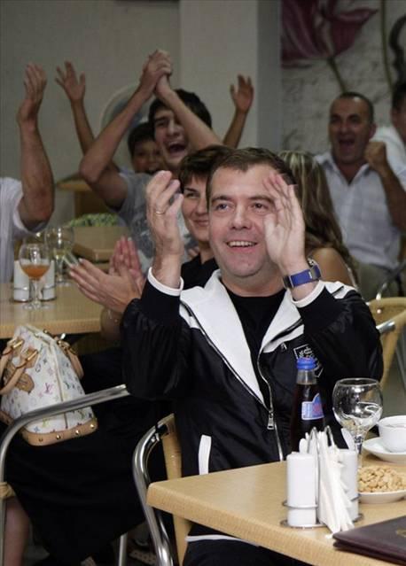 Rusiya və Argentina (2:3) komandaları arasında dünən keçirilən yoldaşlıq görüşünü TV vasitəsilə izləyənlər arasında Rusiya prezidenti Dmitri Medvedyev və baş nazir Vladimir Putin də olub. Qol.Az-ın məlumatına görə, ölkə rəhbərliyi bu oyunu Soçi şəhərindəki kafelerdən birində birgə seyr ediblər.