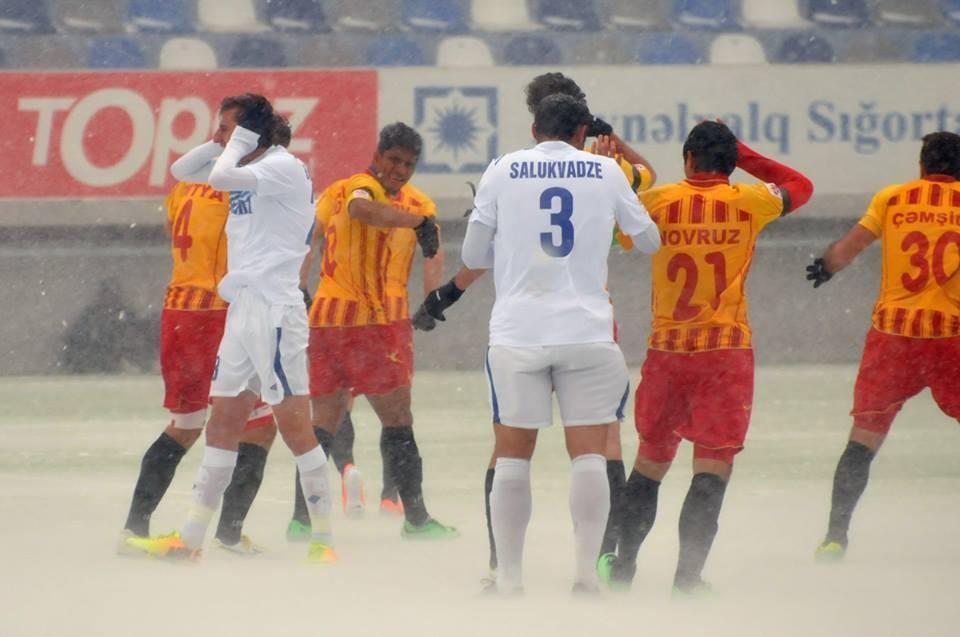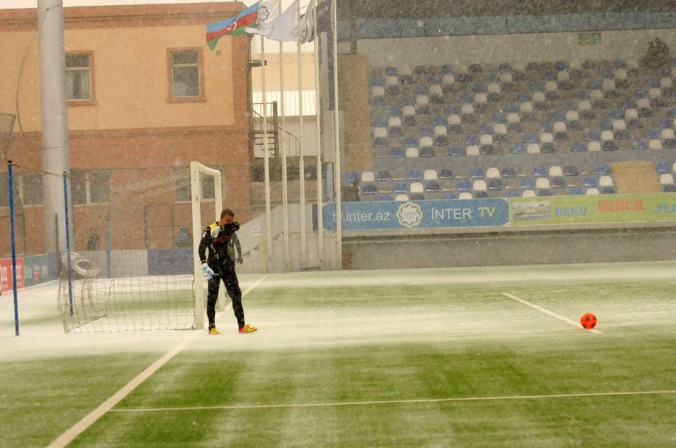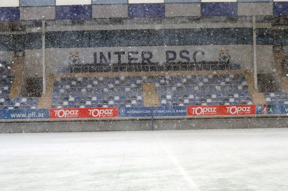 Topaz Premyer Liqanın 28-ci turunda bu gün keçirilən "İnter" - "Rəvan" matçı güclü qar yağması səbəbindən 11-ci dəqiqədə yarımçıq dayandırılıb və oyunun sabah keçirilməsi qərara alınıb.