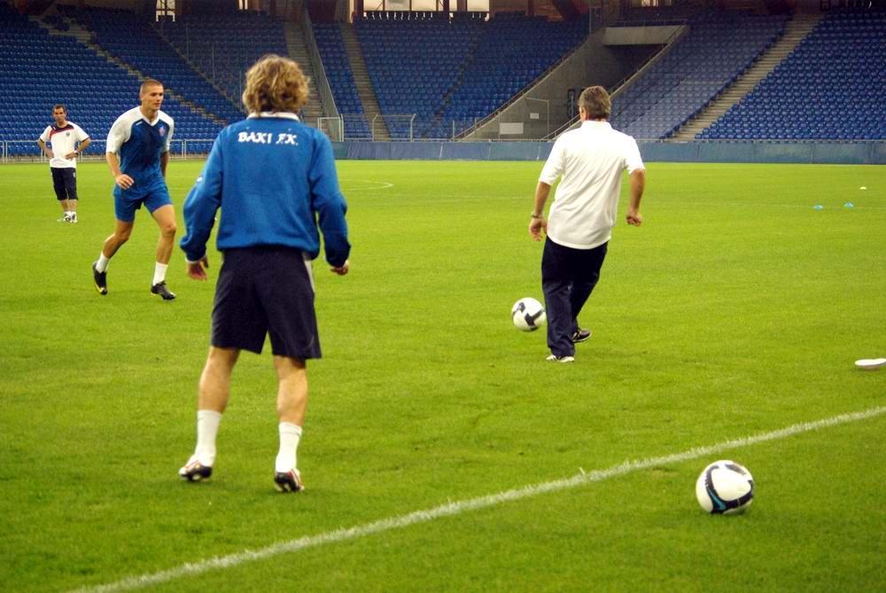 “Bakı”nın baş məşqçisi Coko Haciyevski ötən günlərini yada salıb. Qol.Az-ın Bazeldə olan müxbirinin verdiyi məlumata görə, makedoniyalı məşqçi komandasının oyunqabağı son məşqini keçdiyi “St.Yakobs Park” stadionunda yetirmələriylə birgə “kvardat” oynayıb. Yaşının artmasına baxamayaraq, Haciyevskinin texniki cəhətdən axsamadığı açıq-açkar görünürdü.