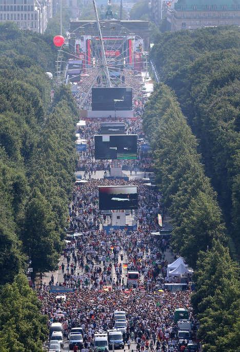 Dünya kubokunu ölkəsinə gətirən Almaniya komandası Berlinin rəmzi olan Brandenburq darvazasının önündə qurulan səhnədə 250 mindən çox azarkeşlə çempionluğu qeyd edib.