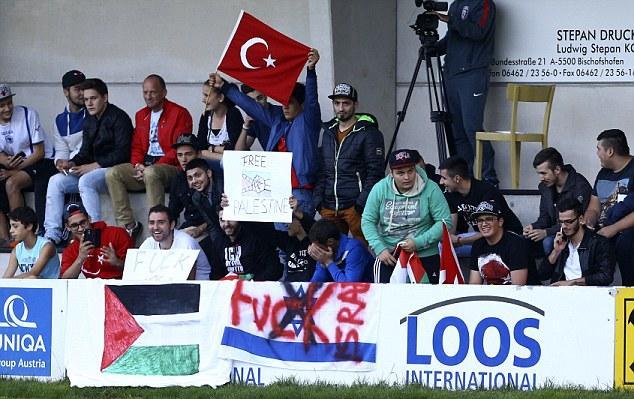 Bu səbəbdən oyun yarımçıq saxlanılıb. Fələstinli azarkeşlər İsrailin Qəzzaya etdiyi hücumlara etiraz əlaməti olaraq bu addımı atıblar. Mühafizəçilərin müdaxiləsindən sonra etirazçılar meydandan uzaqlaşdırılıb və matç başa çatıb.