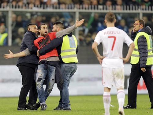 "Qarabağ” klubunun müdafiəçisi Ansi Aqolli də bu oyunda iştirak edib. Meydana girən azarkeşlərdən biri onu qucaqlayıb öpüb. Futbolçu fanatı sakitləşdirərək meydandan çıxmasına nail olub.