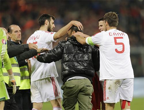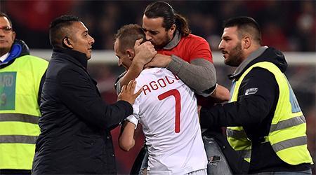 Cenoada keçirilən oyunda bir neçə albaniyalı fanat meydana girməyə cəhd ediblər. Onlardan birinin əlində Albaniya bayrağı olub. Ancaq fanatlar futbolçuların səyi nəticəsində meydandan çıxarılıblar.