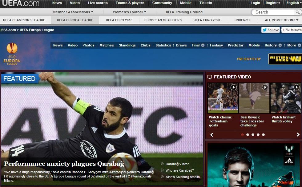 UEFA-nın rəsmi saytı Avropa Liqasının qrur mərhələsinin “Qarabağ” – “İnter” oyunu ərəfəsində Ağdam klubunun kapitanı Rəşad Sadıqovla müsahibə götürüb.