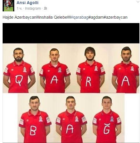 Aqolli Azərbaycanca belə bir mesaj yazıb: “Hajde Azerbaycan! (Haydı, Azərbaycan – red.) İnshalla. Qelebe!”