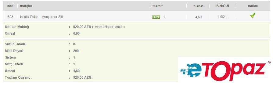 Azərbaycanda mərc oyunlarının yəganə qanuni elektron ünvanı - www.etopaz.az –da 7 aprel tarixdəki bəzi uduşlu kuponlar