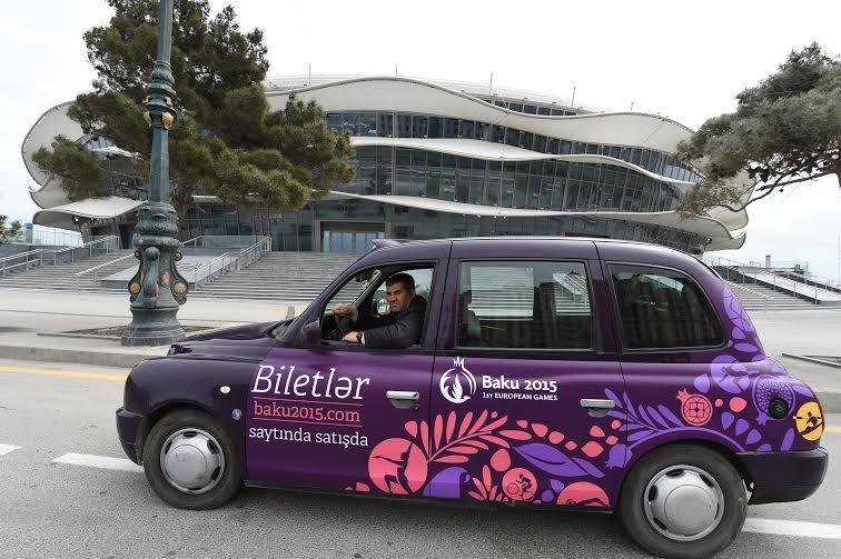 İyunun 12-dən 28-dək keçiriləcək "Bakı-2015" Birinci Avropa Oyunlarının biletlərinin satışını təbliğ etmək məqsədilə, Bakının məşhur çəhrayı taksiləri yenidən dizayn olunub.