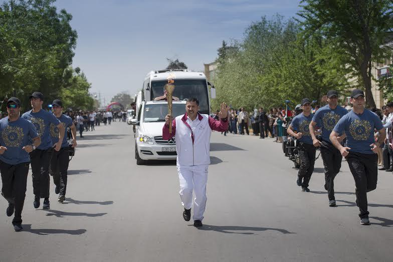Şəhər mərkəzində təşkil olunmuş yürüşü Azərbaycanın ərazi bütövlüyünün müdafiəsi zamanı fiziki sağlamlığını itirmiş mədəniyyət işçisi Ceyhun Mehdiyev başlayıb. Mirzə Ələkbər Sabir küçəsi və Heydər Əliyev prospekti boyunca qət edilən 4 km-ə yaxın yol boyunca bədən tərbiyəsi müəllimi Ülkər İbrahimova, məktəbli Səyyarə Səmədzadə, mədəniyyət işçisi Kamran Əsədov, boks üzrə gənclər arasında ölkə çempionatının qalibi Elmar Abbasov və finalçısı Həsənağa Həsənov, boks məşqçisi Xəyal Mustafayev, «Neftçala» FK-nın məşqçiləri Mehman İbrahimov, Fəxrəddin Mürvətov məşəli növbə ilə daşıyıblar.