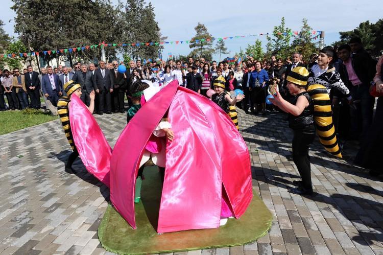 Meydana toplaşanlar birinci Avropa Oyunlarının məşəl estafetini qəbul edən idmançıları sürəkli alqışlarla qarşılayəblar. Burada quraşdırılan səhnədə Avropa Oyunlarının məşəli alovlandırılıb.