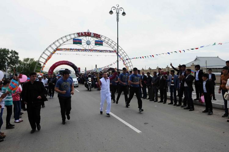 Qol.Az-ın "Azərtac"a istinadən yaydığı xəbərə görə, şəhərin Heydər Əliyev prospekti və 20 Yanvar küçəsində minlərlə rayon sakini və qonaqlar yürüş iştirakçılarını alqışlarla qarşılayıblar.